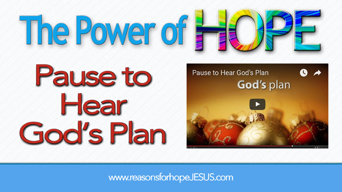 - Pause to Find Hope. Receive the Promises of God. See Jesus. Hear God’s Plan.